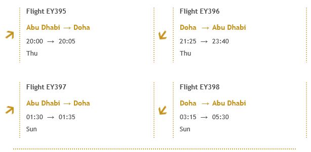 يسعدنا أن نعلن عن استئناف رحلات المسافرين من أبوظبي إلى الدوحة، قطر اعتباراً من 18 فبراير 2021. سنقوم بتسيير رحلاتنا مرتين في الأسبوع على متن طائرات بوينغ 787-9 دريملاينر التي تتميز بمقصورات درجة الأعمال والدرجة السياحية الحائزة على جوائز.