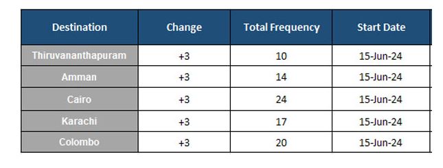 وجهات جديدة (التوقيت اعتباراً من 15 يونيو 2024، جميع المواعيد بالتوقيت المحلي)