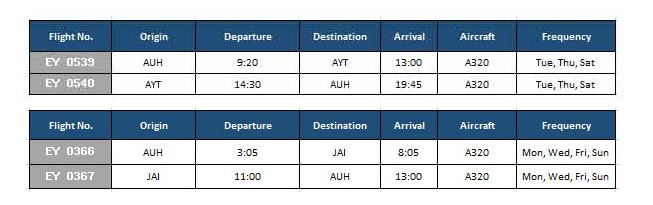 أما جايبور، عاصمة إقليم راجاستان في الهند، فهي مدينة تجمع بين العادات التقليدية والنشاطات العصرية. تُعرف جايبور باسم ""المدينة الزهرية"" مع مبانيها الهندسية المليئة بالورود، وهي تتميز بتراث ثقافي غني يضم قصوراً مذهلة، مثل قصر حواء وقصر المدينة. يُذكر أن إضافة جايبور يزيد عدد الوجهات التي تشغّلها الاتحاد للطيران إلى الهند إلى إحدى عشرة وجهة. واعتباراً من 15 يونيو، تعمل الاتحاد للطيران أيضاً على زيادة عدد رحلاتها إلى عدد من الوجهات الرئيسة. ستقوم الاتحاد للطيران بزيادة رحلاتها إلى ثيروفانانثابورام وعمّان، بإضافة ثلاث رحلات أسبوعية إلى كل من الوجهتين، حيث سيُسجّل مسارهما إجمالي 10 و14 رحلة أسبوعياً على التوالي. وتشمل الرحلات الإضافية ثلاث رحلات إضافية إلى القاهرة بإجمالي 24 رحلة، وزيادة رحلات كراتشي إلى 17، وكولومبو إلى 20 رحلة أسبوعياً.