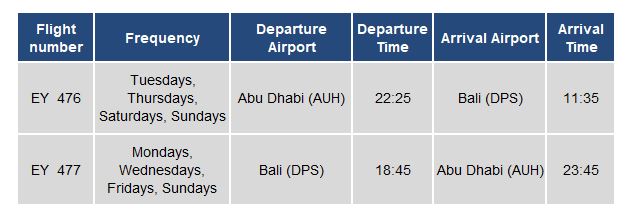 يسعدنا الإعلان عن إطلاق خدماتنا الجوية المباشرة إلى جزيرة الأحلام بالي أربع مرات أسبوعياً اعتباراً من 23 أبريل 2024. سيصل الضيوف إلى مطار نجوراه راي الدولي (DPS) في جزيرة بالي في توقيت ملائم لمتابعة رحلات الربط والمتابعة الخاصة بهم مع الرحلات القادمة عبر شبكة الاتحاد العالمية المتنامية، وهم يشعرون بالراحة والانتعاش وجاهزون للانتقال إلى منتجعهم. ويمكن للضيوف المسافرين من أوروبا وأميركا الشمالية تنظيم رحلاتهم للتوقّف في أبوظبي والاستمتاع بالضيافة العربية الأصيلة والمرافق السياحية المذهلة في العاصمة الإماراتية. وتقوم الاتحاد للطيران بتشغيل رحلاتها الجوية إلى بالي أربع مرات أسبوعياً أيام الثلاثاء والخميس والسبت والأحد، وذلك على متن طائراتنا الحديثة من طراز بوينج 787-9 دريملاينر، التي تقدّم خدماتنا المميزة الحائزة على الجوائز، وتمنح الضيوف المزيد من الراحة وتجربة سفر أكثر متعة ورفاهية على مدار العام. بالي ابتداءً من 23 أبريل 2024