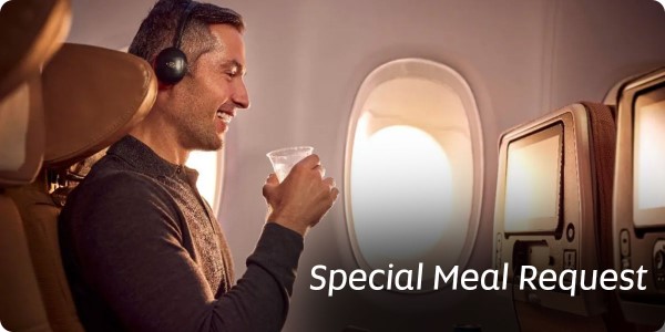 ومع ذلك، إذا كان لديك متطلبات غذائية مُحددة، فلا يزال بإمكانك طلب وجبة لمرضى السكري (DBML) أو وجبة خالية من الغلوتين (GFML) أو وجبة منخفضة اللاكتوز (NLML) عبر، etihad.com/manage. يجب تقديم الطلب قبل 24 ساعة على الأقل من موعد مغادرة الرحلة.