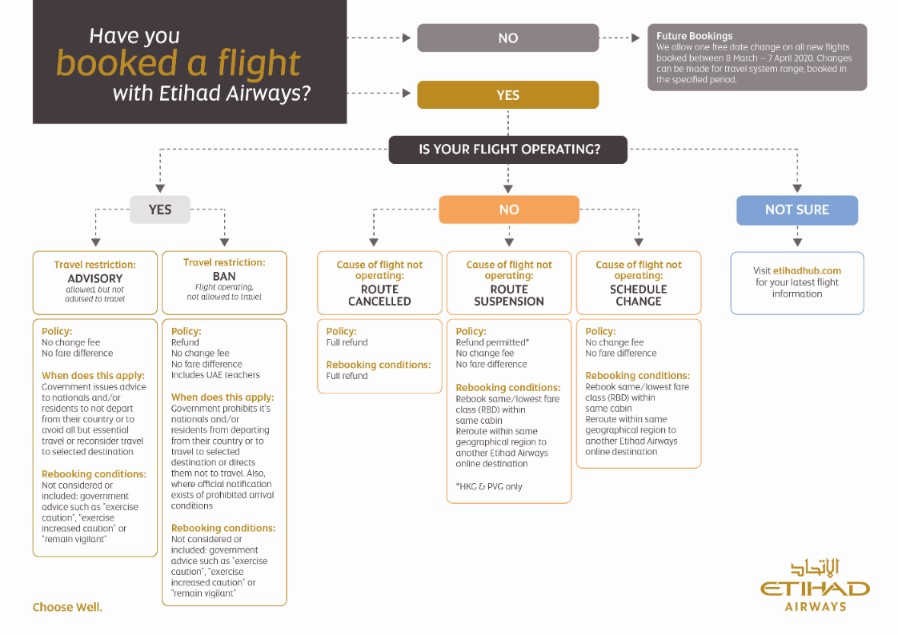 Policy for travel commencing in the UAE. One free date change is permitted for tickets issued on or before 5 March 2020 for travel until 20 May 2020. This applies to tickets issued in the UAE where the origin or destination is AUH.