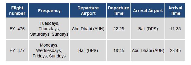 Conveniently timed to connect with flights from across Etihad's growing global network, guests will arrive at the island's Ngurah Rai International Airport (DPS) refreshed and ready to transfer to their resort. Bali - Abu Dhabi schedule, from 25 June 2024.