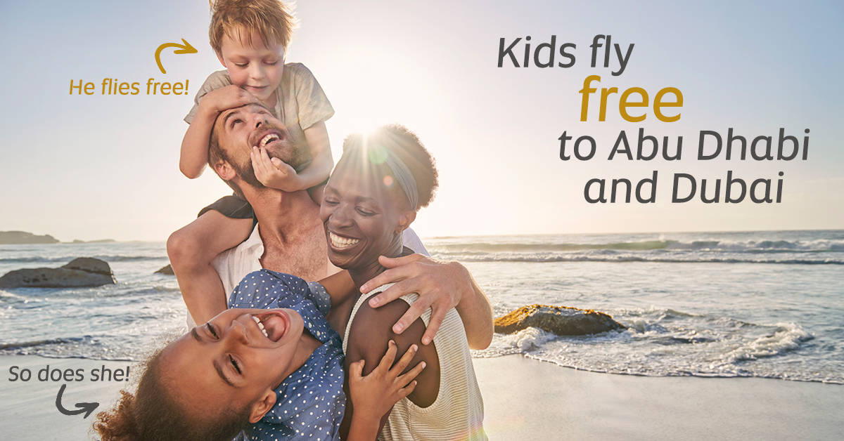 Dear Trade Partner, Family holidays are back on! Two children fly for free with every adult ticket booked to Abu Dhabi or Dubai, for travel until 30 September 2021. Whether it’s a week relaxing on the beach or an adventure-filled city break your guests are looking for, the UAE is an ideal destination for family holidays; with year-round sunshine and plenty to keep even the most active of explorers busy. Abu Dhabi is open to tourists without quarantine from select destinations. Guests travelling to other emirates can land in Abu Dhabi and go directly to Dubai or any other northern emirate without having to quarantine. Book by 03 February for travel until 30 September 2021 through all booking channels.